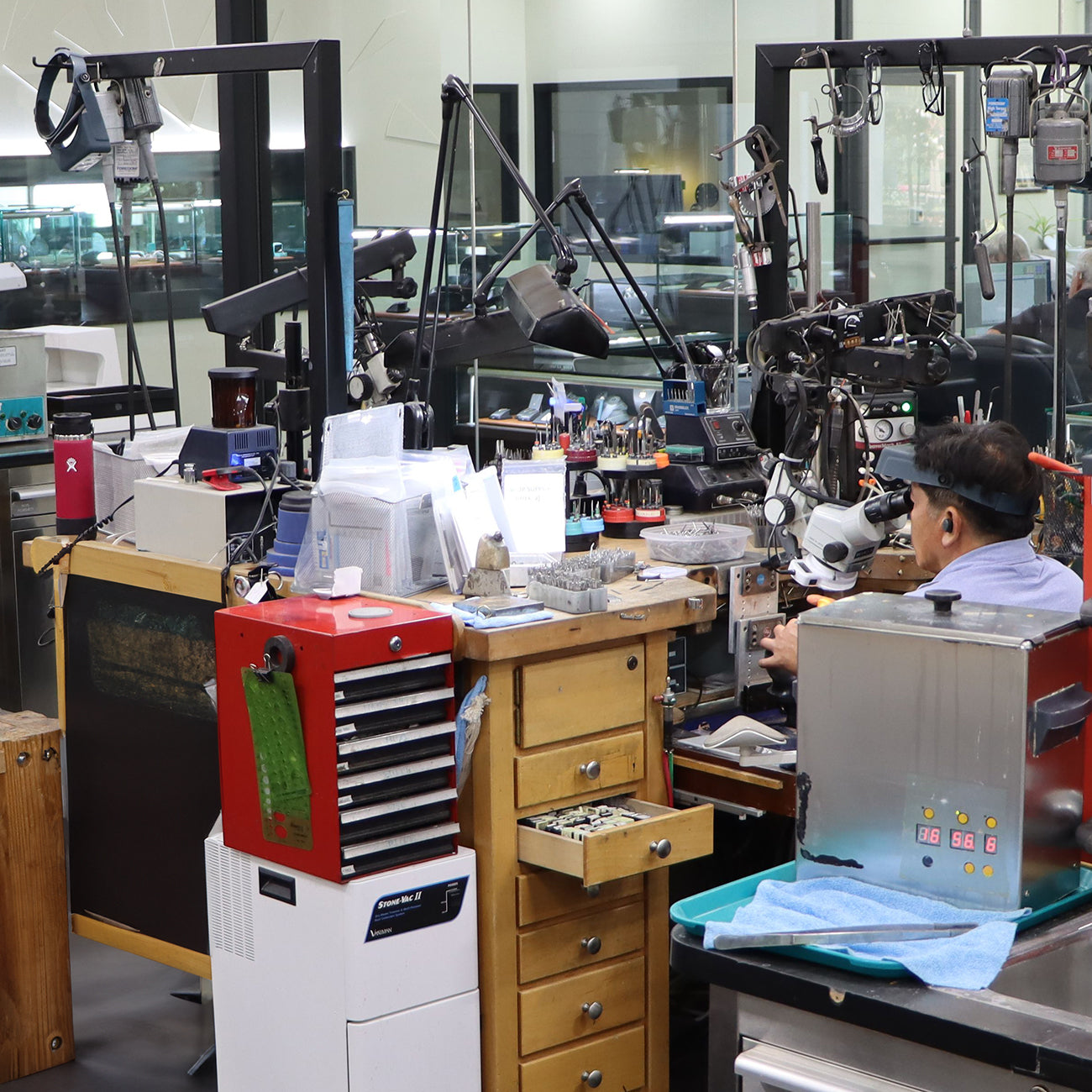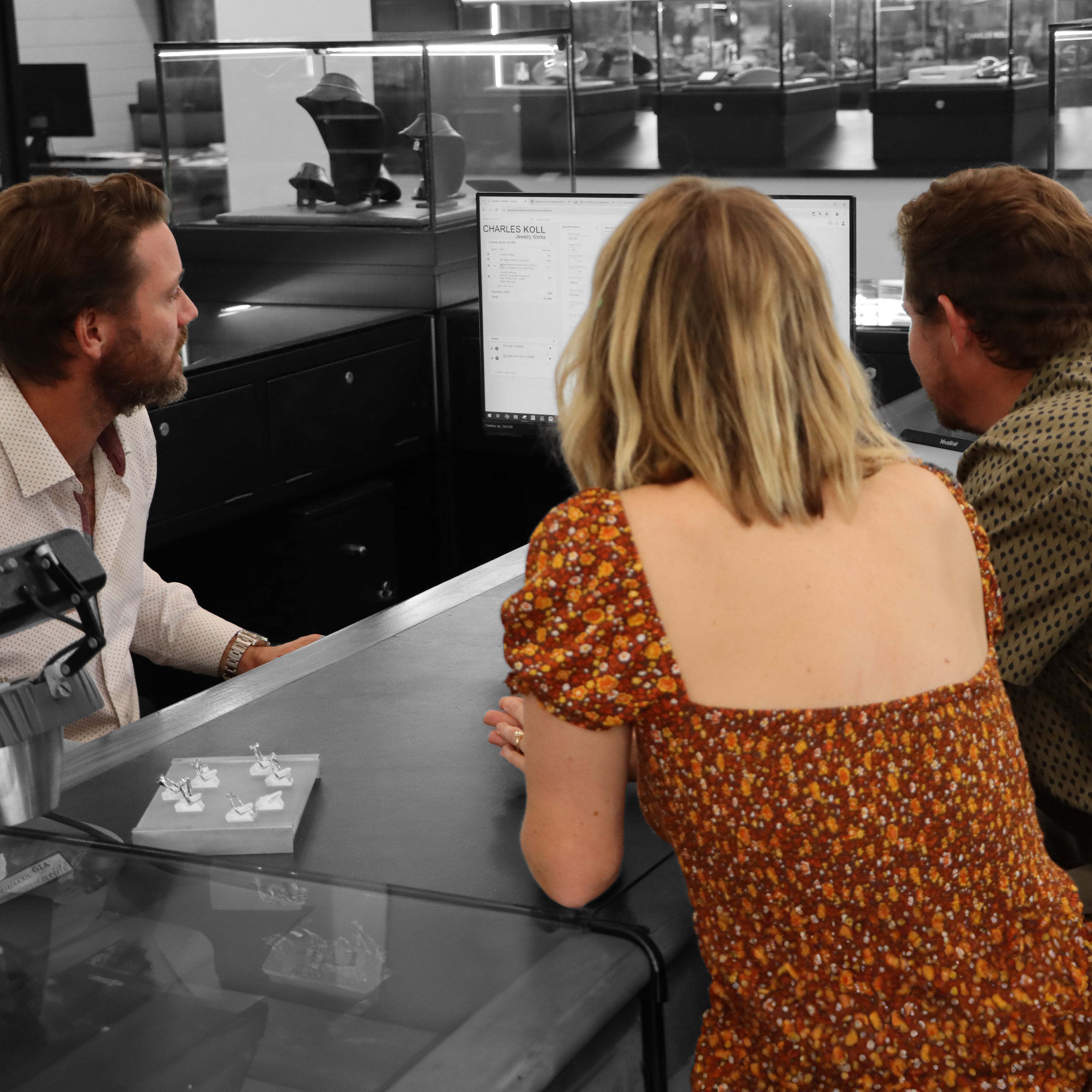 Work with our designers to create a one-of-a-kind piece that will be brought to life by our talented team of artisan jewelers. Our turnaround time is exceptional because we make everything on-site in our glass enclosed workshop.