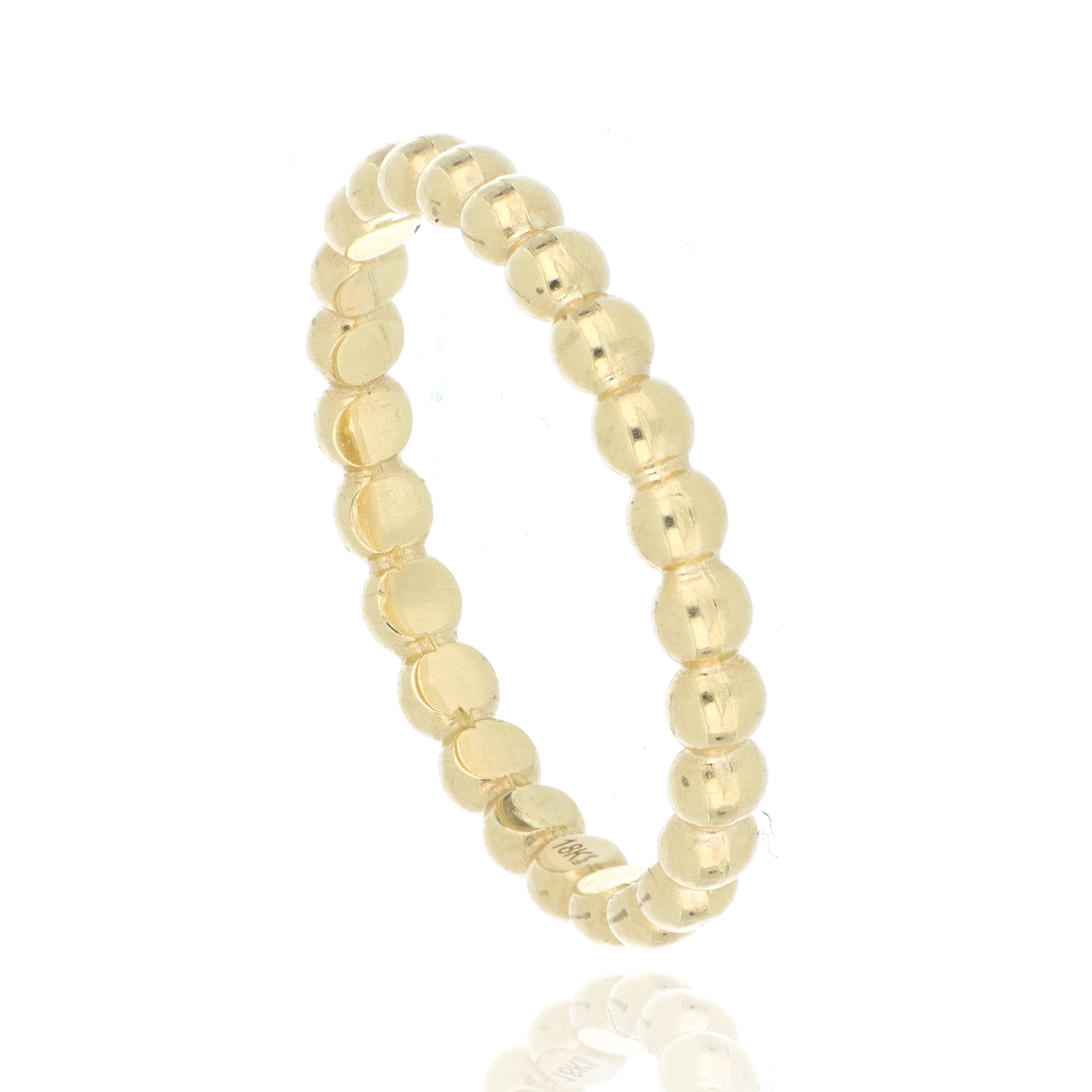 Enhance your collection with this 18k Yellow Gold Beaded Stackable Ring. Featuring a charming beaded design, it's perfect for stacking or wearing alone, adding a touch of elegance and versatility to any outfit.