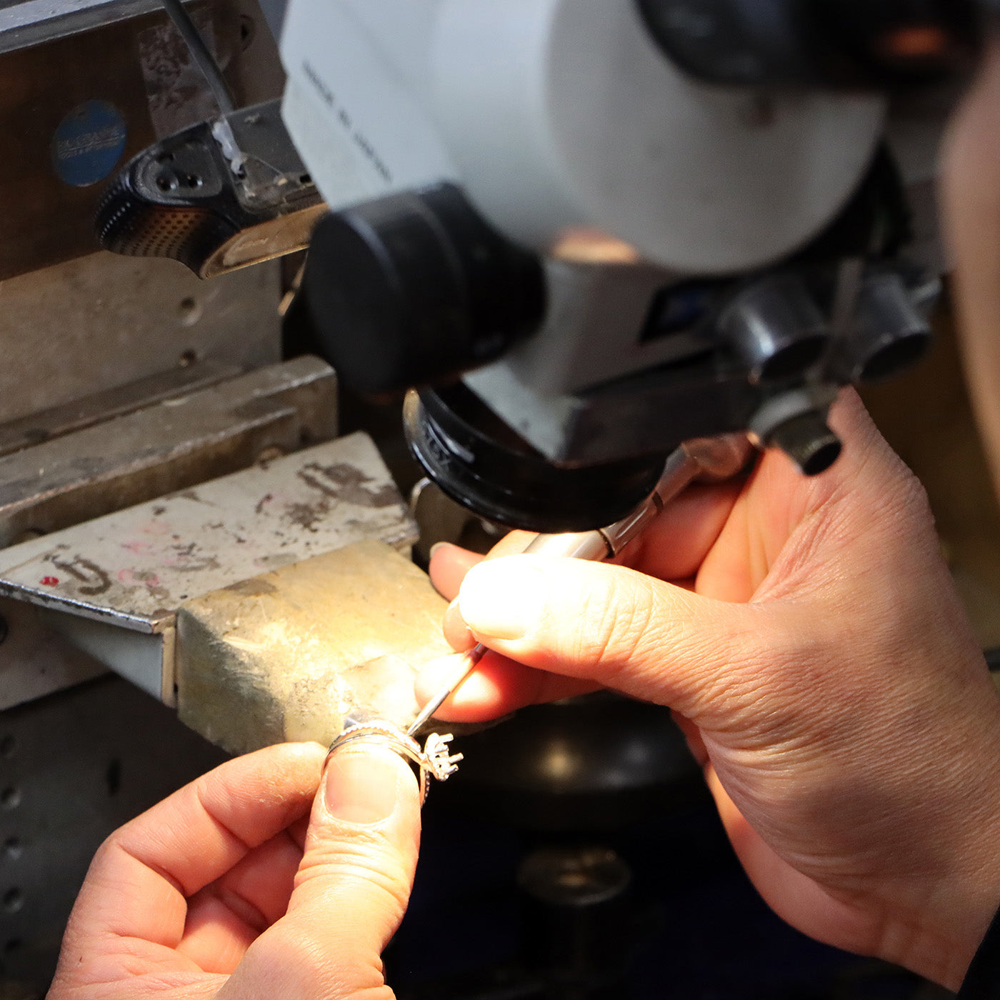 Engraving is a delicate process, our highly-skilled jewelers will give you the same excellent service engraving your jewelry as they did designing it.